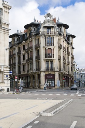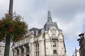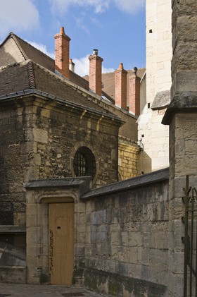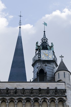 Tour d'angle de la façade occidentale de l'église Saint-André vue au soleil couchant depuis la place Foch. - Corner tower of the west facade of the Church of St. Andrew at sunset views from the Place Foch.
