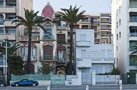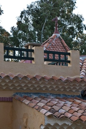 Cyprès devant l'entrée d'une maison dans la ville médiévale (Ville Haute)