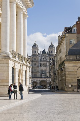 Eglise Saint-André vue de nuit depuis la place Foch. Sur la gauche, angle de la maison dite du Prince Noir sur la place Foch, construite au XIVe siècle. - St. Andrew's Church night view from the Place Foch. On the left, corner of the house known as "House of the Black Prince" on the Place Foch, built in the fourteenth century.
